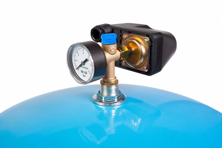 Комплект автоматики на баке «КАБ» используется для работы в системах водоснабжения совместно с гидроаккумулятором. Установленное на штуцере реле давления представляет собой двух-контактное реле коммутации электрических цепей, срабатывающее по величине давления воды. После прекращения разбора воды давление в системе растет до верхнего предела настройки реле давления, после чего реле давления выключает электронасос. При открытии крана вода поступает в систему под давлением из гидроаккумулятора. По мере расхода воды давление в системе падает до нижнего предела настройки реле давления, после чего реле давления включает электронасос. Визуальный контроль давления в системе водоснабжения позволяет осуществлять манометр с пределом измерения 6 бар. Также комплект позволяет производить подсоединения дополнительных элементов системы водоснабжения через дополнительный вывод G 1/4 (внутренняя резьба).